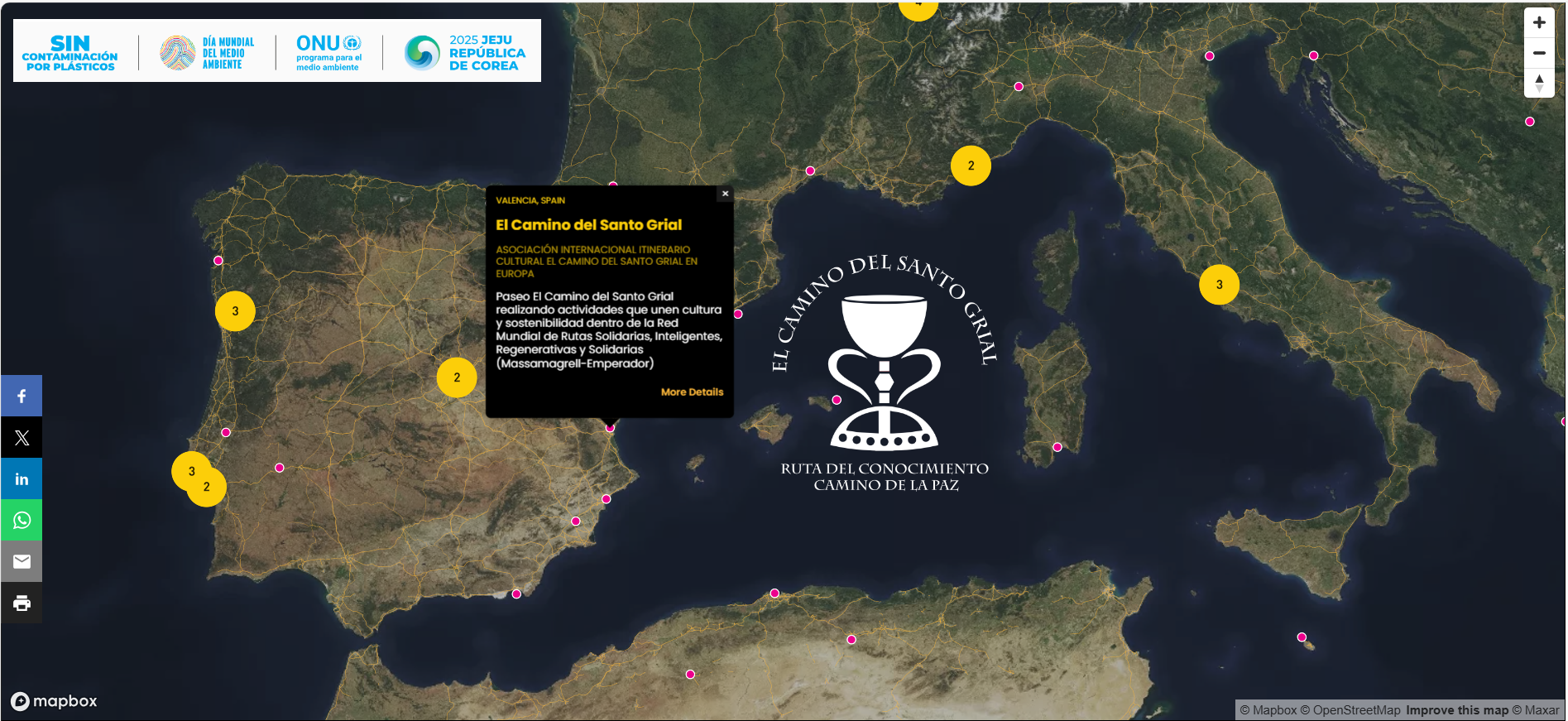 El 5 de junio de 2025, con motivo del Día Mundial del Medio Ambiente, El Camino del Santo Grial, Ruta del Conocimiento, camino de la Paz Itinerario Cultural en proceso de certificación por el Consejo de Europa, miembro fundador de la Red Mundial de Rutas Solidarias, Inteligentes, Regenerativas y Circulares organiza una caminata simbólica y educativa en Valencia. Natalia Castro, doctoranda industrial en turismo regenerativo y desarrollo local, explicará la plataforma Viajeros Solidarios y los estudios que está llevando a cabo en el Observatorio de Impacto Local RESITUR.